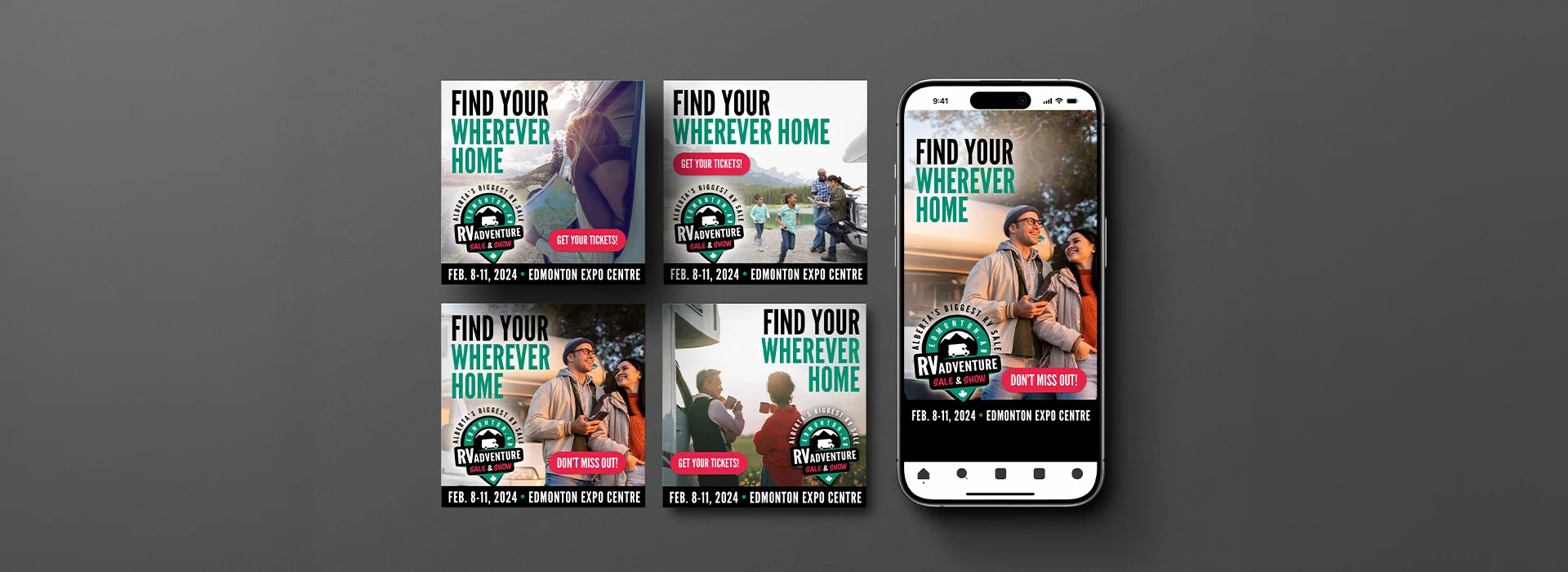 Online Advertising, TV, Radio, OOH, Sponsored Content, Website Development/Landing Page, Professional Videography & Photography, Partner Marketing Kits, and Post Event Surveys. Habit supported the RVDA of Alberta with communication, publicity and awareness campaigns for Calgary and Edmonton RV Shows. We developed and implemented a strategy to create awareness, engage the audience and drive attendance. Leveraged the tagline ‘Find Your Wherever Home’ to tap into the adventurous spirit of RVers. We created key campaign visuals, including videos and creative designs, aligned with the messaging.